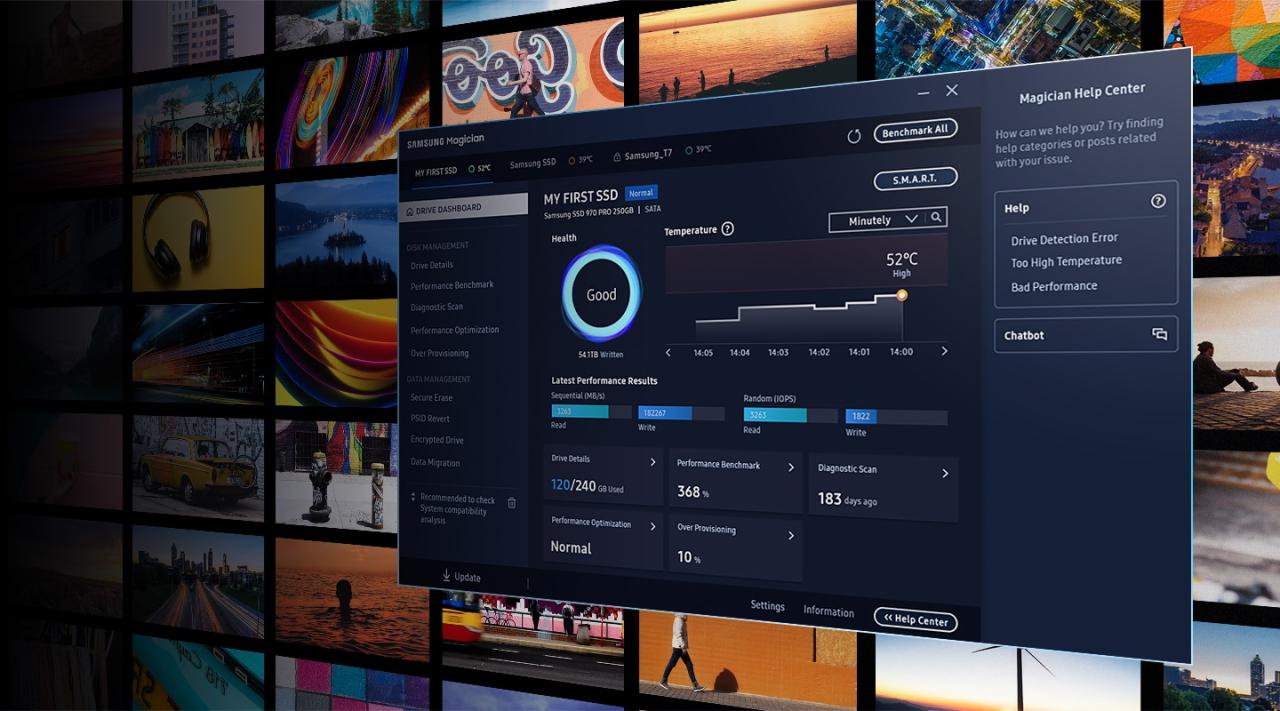 拥有三星 SSD?无论您拥有哪种型号,都比以往更容易发挥 SSD 的全部潜力。三星 Magician 直观的用户界面让您触手可及的高级优化工具套件。通过监控驱动器运行状况和自定义您的 SSD,最大限度地提高内部 SSD 和便携式 SSD 的性能。